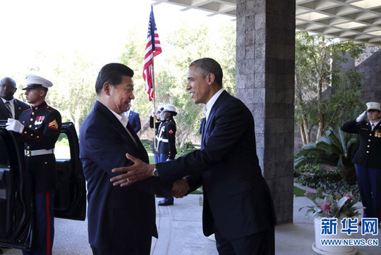 当地时间7日下午,国家主席习近平同美国总统奥巴马在美国加利福尼亚州安纳伯格庄园开始举行中美元首会晤,就中美关系及共同关心的重大国际和地区问题广泛深入交换意见。
