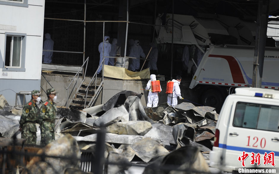 吉林禽业公司火灾现场禽类产品将被无害化处理