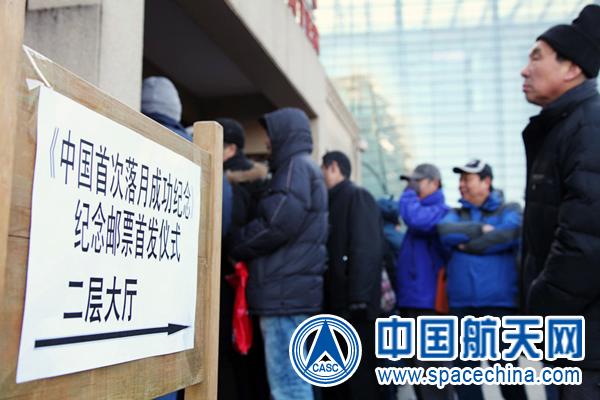 时间跨入2014年的第一天,早上7点,天刚蒙蒙亮,北京天文馆还未开门,就已经有上百人自发地在门前排起了长队,这些集邮爱好者正等待着购买《中国首次落月成功纪念》邮票和首日封,并加盖“月亮邮局”纪念邮戳,将“第一落”的喜悦分享到五湖四海。