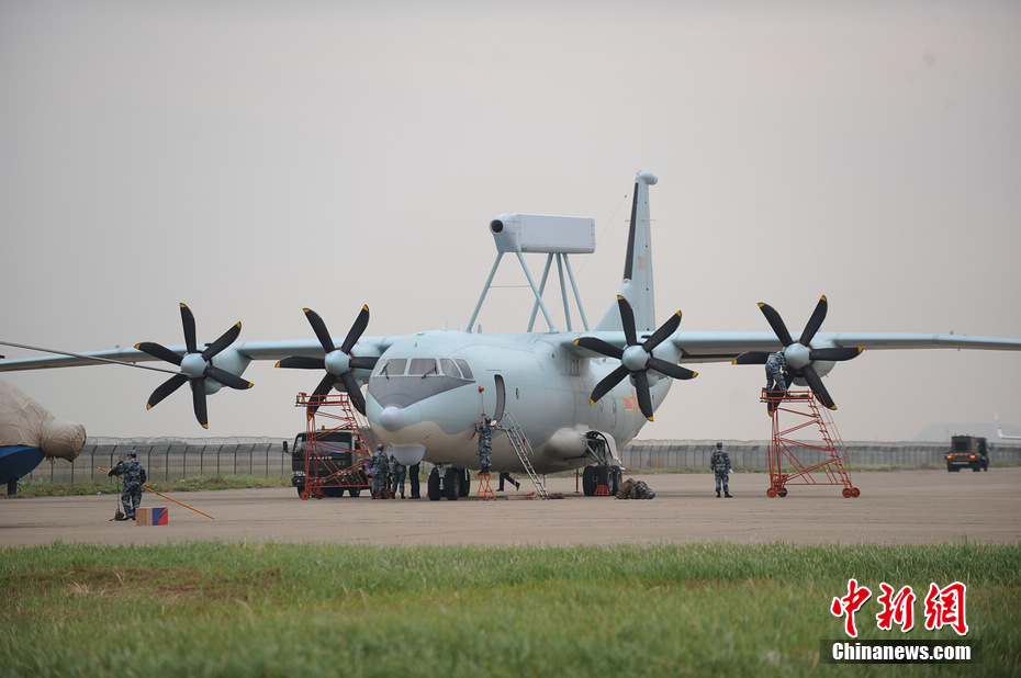 空警-200机载雷达天线类似体操用的平衡木,是中国自行研制的一种轻型、全天候空中型预警飞机,在运8C型机基础上进行了80%以上改动而成。曾在2009年国庆阅兵中现身。(完)