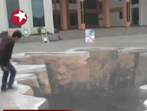 学校操场现“大坑” 原是3D地画“创作”