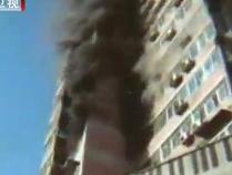 居民楼高层失火 消防栓成摆设