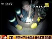 实拍:醉汉掉下10米深井 被救起还在酣睡