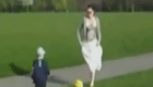 长裙妈妈示范踢足球 儿子都懵了!