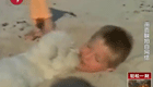 宝宝学走路被"天外飞球"击晕