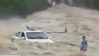 海南洪水突袭 出租车过桥被卡住