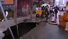 沈阳一公交站地面塌陷乘客掉入深坑