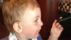 小男孩第一次喝汽水后手舞足蹈