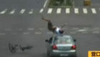 实拍:男子闯红灯 被撞腾空翻