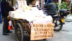 小贩悬挂标语:工作为荣包二奶为耻