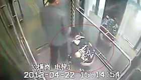 监拍:女子在地铁站电梯里大便