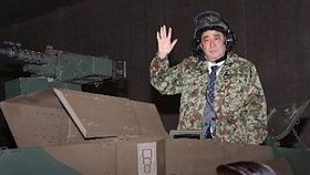 安倍穿军装登坦克 高呼“天皇万岁”