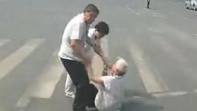 中年男子马路上殴打拖拽七旬老太
