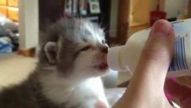 猫咪边喝奶边动耳朵卖萌