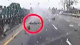 实拍:行人匆忙过马路 被车撞飞又遭大巴碾压