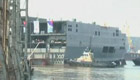 俄首艘“西北风”级两栖攻击舰船尾下水