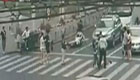 监拍:摩托冲撞拖行交警20米 路人飞奔救援