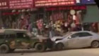 实拍:两车街头对撞 司机提刀砍人