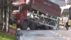 大货车翻斗忘放下 交通监控被撞下