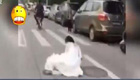 新娘摔下接亲电动车