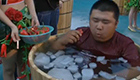 实拍游客坐冰桶吃辣椒