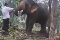实拍男子欲驯服大象被撞飞