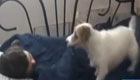 【同期】(台湾艺人 陈志朋)有一点点父爱的味道吧!刚才舔我身上,觉得很好玩,很幸福,很像抱了一个婴儿一样。因为其实它们很可爱,就是跟小孩子一样,就是用抓的。