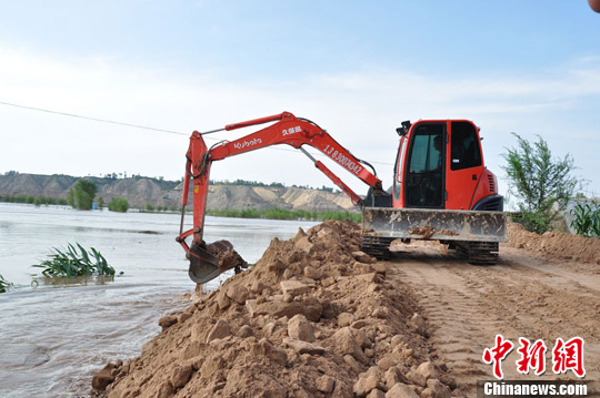 今年入汛以来,受黄河上游降水持续偏多和龙羊峡、刘家峡、乌金峡等水电站加大泄洪流量影响,黄河靖远段水位不断上涨,致使该县境内9个沿河乡镇出现56处险情,65公里河堤受损。王晓燕 摄