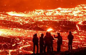 民众围观冰岛火山