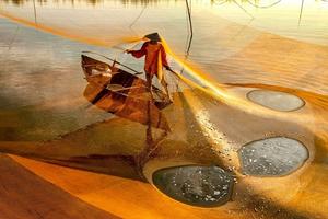 渔民撒网捕鱼画面绮丽