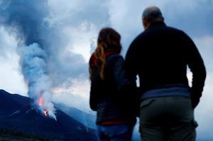 西班牙民众围观火山喷发