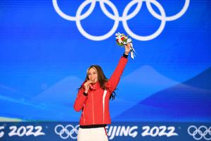 谷爱凌咬金牌庆胜利