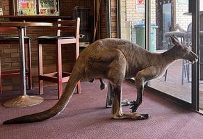 袋鼠溜进酒吧“避暑”