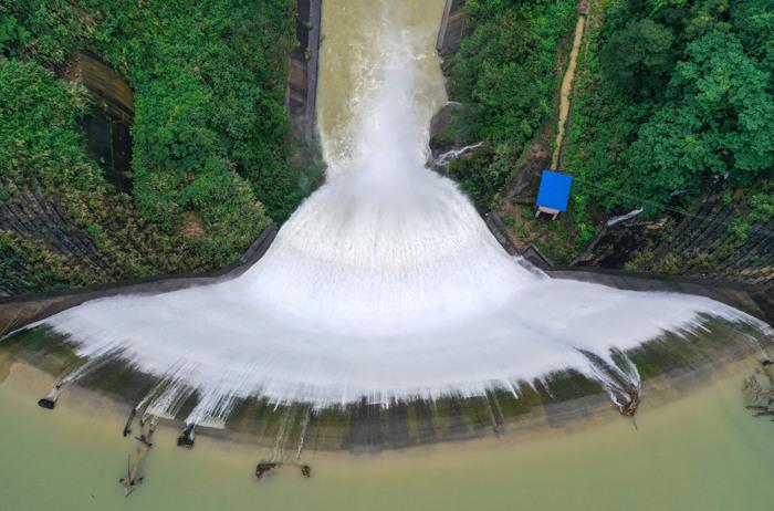 水库瀑布扇形流落