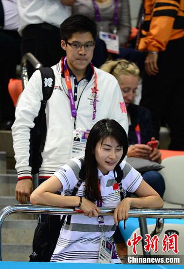 资料图:2012年伦敦奥运会跳水女子双人3米板决赛,郭晶晶、霍启刚观战。Osports全体育图片社